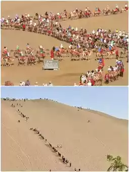 Hop on a camel 🐫 (CNY 100/person) and sway into the depths of the dunes.