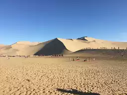 Ride a camel (¥100/person) across the sand dunes, climb to the top of Mingsha Mountain to overlook the Crescent Spring sunset.