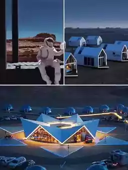 Unique hexagram-shaped architecture in the barren Gobi, a renowned stargazing base! Loft villas offer better views and privacy, with large glass-domed rooms for stargazing from bed!