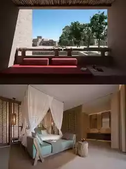 An artistic wild luxury retreat hidden in the desert, blending traditional and modern art with stunning views. Unique nightly lantern lighting ceremony and stellar terrace stargazing.