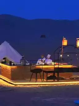 ✅Desert gourmet dinner, watching sunset with fine wine and photos