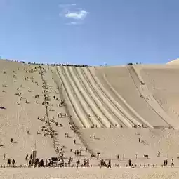More than just towering sand dunes and a famous oasis, Mingsha Mountain & Crescent Lake Scenic Area is a well-planned desert park where nature, culture, and adventure meet. The moment you pass the entrance, wide, clean paths guide you towards the dunes, lined with shaded rest stops, signboards, and even photo points to capture your journey.