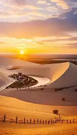This desert oasis, with yellow sand on the left and the crescent lake on the right, truly deserves the title "The Best Scenery Beyond the Great Wall"!