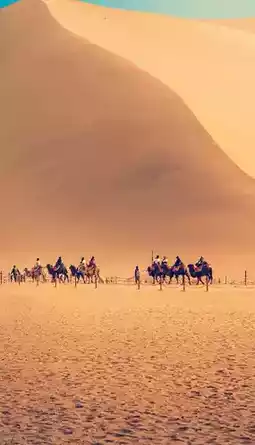 3οΈβ£ Camel caravan S-curve (background of rolling sand dunes)