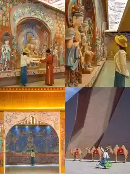 After the show, the wind-driven caisson ceiling and the lamp wheel at the market perfectly replicate the magical scenes from Mogao Cave murals, and you can also taste special snacks along the Silk Road.