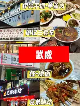 • Wuwei: Cai Ji San Tao Che, Mianpizi (noodle skin), You Sanzi (fried dough strips), Ren cold noodles, Shami noodles, Youbing rolled cakes