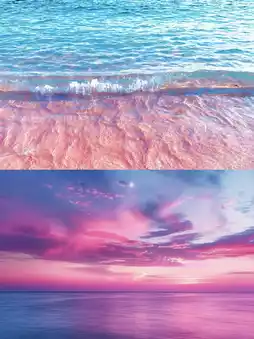Stand by the sea, feel the gentle breeze, and listen to the waves lapping the shore. The whole world seems to be painted in a soft pink.