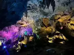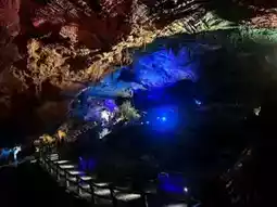 The stalactite caves are bizarre and unique, locally known as 'Fairy Caves'. Located on Duxiu Peak between Dushan and Libo, the entrance is halfway up the mountain. The trails are well-maintained and illuminated with colorful lights, further highlighting the peculiar rocks and formations, creating a mysterious and otherworldly atmosphere.