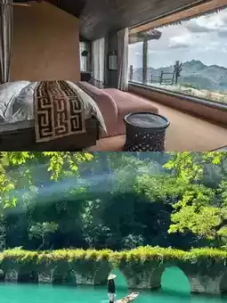 1. Puyu Wild Luxury Resort, hidden atop the highest peak in Qiannan Buyei and Miao Autonomous Prefecture, Guizhou's "Little Tibet," at an altitude of approximately 1500 meters. The hotel is entirely handcrafted, its architecture reflecting the original Shui ethnic style, and its decor featuring handmade artworks and collectibles from around the world.