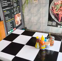 It is a small roadside restaurant, but the taste is not small at all. The shop is like a 2-story house that has been converted into a restaurant. There are about 3-4 tables inside, including about 3 tables outside. The food menu of the shop focuses mostly on krapow, but there are meats such as pork, beef, chicken, seafood. In addition, there are krapow with pork sausage, various krapow, and some days there is a special menu. The day I went, it was krapow with crispy fried catfish. In addition to krapow, there is also stir-fried bell peppers and fried garlic. We can order meat as desired. I ordered krapow with minced beef and fried egg. The shop asked if I wanted it spicy or medium. I ordered medium spicy. The taste was very delicious, well-rounded, and spicy enough. The shop does not stir-fry each dish. The shop serves it on a vintage plate with a paper plate. In addition, there are also chrysanthemum tea, iced tea, or soda menus. There will be a lot of people at noon, and there will also be many riders waiting to receive orders. It would be better to go before noon or after the afternoon.