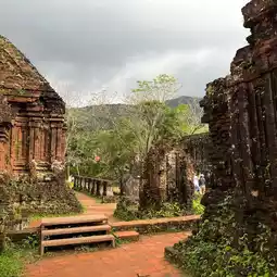 📍 Located about 1.5 hours from Hoi An, this historic site is often called Vietnam’s Angkor Wat — home to the ancient Hindu temples of the Champa Kingdom, set against a lush valley surrounded by mountains. The temples, some over a thousand years old, are partly in ruins but still rich in atmosphere and history.