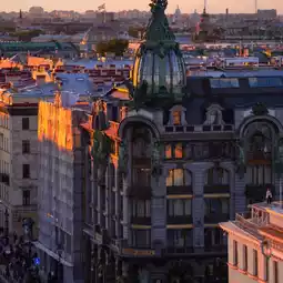 · Nevsky Prospekt: A grand urban panorama stretches below the tower. Watching trams, canals, and young Russians enjoying rooftop parties across the street is quite entertaining!