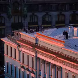 From the tower's front, you can witness the rare sight of the golden dome of 'St. Isaac's Cathedral' and the grand colonnades of 'Kazan Cathedral' facing each other. The symmetry of classical architecture speaks volumes about the city's elegance.