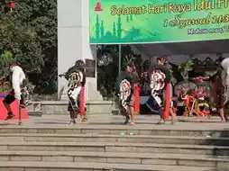 Towards dusk, at 5:30 p.m., there was a Reog Ponorogo dance performance. Very lively and entertaining! The sound of the gong, the barongan mask, all made the kids amazed.