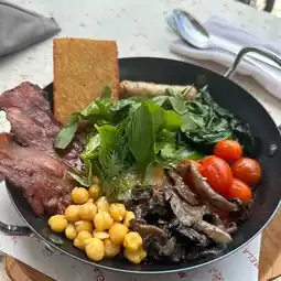 The poached eggs and truffle scrambled eggs. Excellent service. Everybody is super friendly and helpful here. The owner too stops by now and then to say hello. We loved the large menu with plenty of options to accommodate various different preferences depending on sweet, savory, vegan, meat etc.