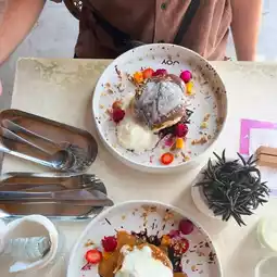 The pancakes are already made and not fresh, they are stacked on each other above the microwave and they will be heated in it. That I didn't like. But everything else was delicious. We had an acai bowl and eggs with toast and after that we tried the cinnabun nutella and a lemon meringue