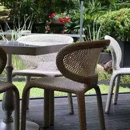 Staff are genuinely friendly, and the space feels inviting with its mix of rustic and minimalist decor. Quirky, wabi-sabi-inspired tableware on display adds a cozy, homespun touch. Overall, a beautiful hangout for Bintan.