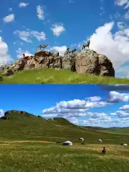 ⏰️Afternoon: Check in at [Genghis Khan Lookout Mountain], then go to [Ulan Wutai Scenic Area]. Along the way, there are magnificent grassland scenery with yurts, cattle and sheep scattered on the grassland. When you arrive at the scenic area, you can appreciate the Buddhist culture on the grassland, study, go grass skiing, and sightsee on the grassland. For dinner, you can go to Balager Gol Town in Xiwuqi to enjoy authentic Ujumchin mutton.