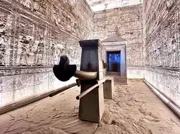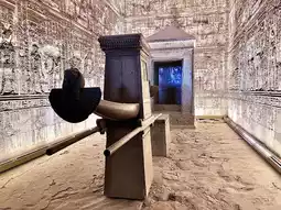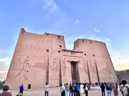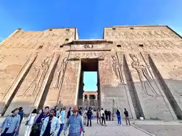 Two colossal statues greet visitors at the temple entrance. The interior is richly decorated, with murals depicting the myth of Horus's victory over the evil god Set. The shrine deep within the temple, though a replica, the original is currently housed in the Louvre Museum in Paris, yet it still exudes a solemn and sacred atmosphere. What's particularly striking is that the falcon god Horus on the shrine, while symbolizing royal power, has a charming and approachable appearance, making it feel approachable.
