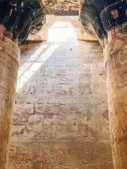 Looking around the hypostyle hall, palm-shaped stone columns hold up the sky, their capitals carved with the Eye of Horus—a protective symbol and a testament to the sophistication of ancient Egyptian mathematics. Running my fingers over the column’s rough carvings, I can feel the warmth of the craftsmen from the Ramesses era.