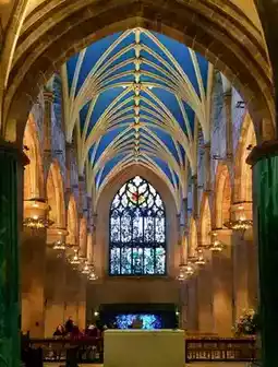 St. Giles' Cathedral on the Royal Mile is also a classic, notable for its crown-shaped spire, modeled after the Scottish crown, and the stained-glass windows within.