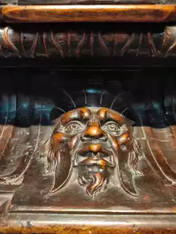 Some pieces resemble heads or faces, carved into lids, corners, or decorative panels. These aren’t portraits in the traditional sense—they’re symbolic, stylised, sometimes abstract, echoing Celtic traditions and medieval craftsmanship. A box might carry the curve of a brow, the suggestion of eyes, or the solemn geometry of a mask. These forms evoke ancestry, ritual, and identity, as if the object itself remembers who made it.