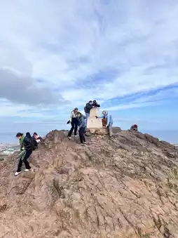 Despite the chill, the summit is alive with fellow hikers—drawn by the panoramic views and the gentle thrill of the breeze. There’s a shared joy in this moment, a quiet camaraderie among strangers who’ve all made the climb.