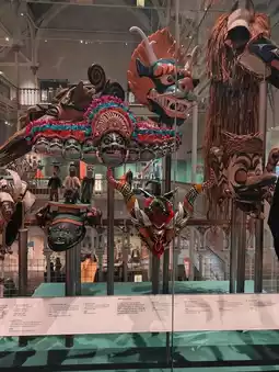 Nearby, ceremonial masks from diverse cultures shimmer with color and spirit. Used in rituals, dances, and divine performances, they blur the line between human and sacred. Feathers, gold leaf, lacquered wood—each mask is a moment of transformation, a bridge between the earthly and the divine.
