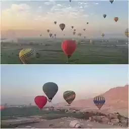 The hot air balloon tour in Luxor, Egypt, was beyond imagination. Around 4 a.m., we were picked up from the hotel and transported to the dark west bank, where numerous hot air balloons were already being prepared. Watching them rise one by one into the sky felt like a scene straight out of a movie.