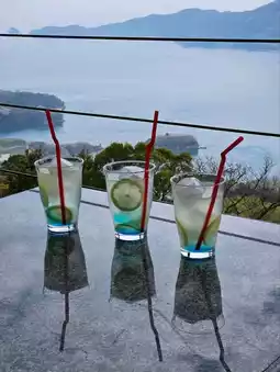 Tomin Chaya is an open-air cafe located in Kareiyama Observation Park, a spectacular spot on the Shimanami Kaido in Miyakubo-cho, Imabari City.