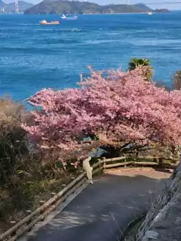 In this perfect location, with a carpet of rape blossoms on one side and the sparkling blue sea of the Iyonada on the other,