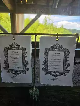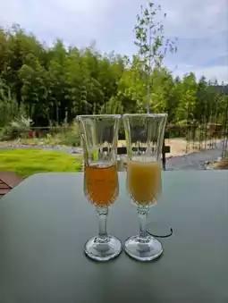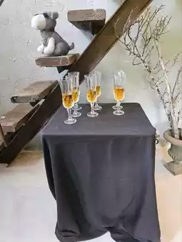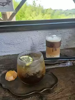 A welcome drink is prepared near the entrance of the shop, and you take a glass and move to your seat.