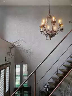 The handrails on the stairs look quite old, and the retro atmosphere is like something out of a fairy tale,