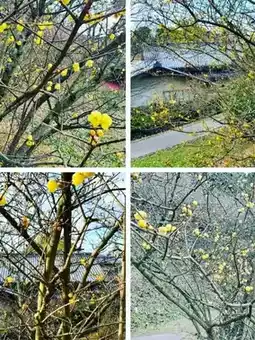 The wintersweets blooming here were just in full bloom, and their bright yellow color stood out against the blue sky.