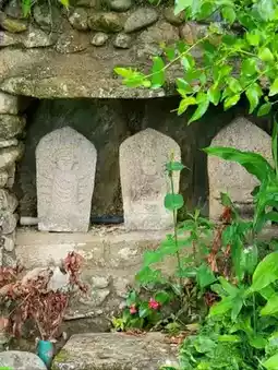 Near the waterway is the stone paved Jizo statue of the 88 temples.