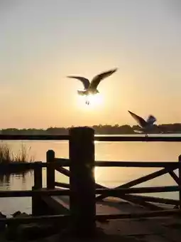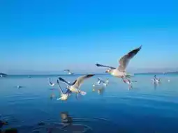 Flocks of seagulls soar over the lake, occasionally resting then taking flight again🕊️
