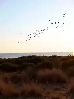 The seagulls’ silhouettes traced graceful arcs in the morning light