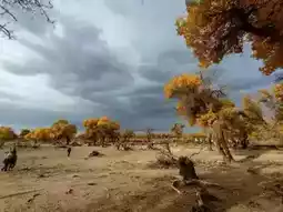 At the edge of the desert near Badaoqiao, the scene changes again—the golden Populus euphratica meets the reddish desert. A few withered Populus euphratica stand crookedly on the sand dunes; though leafless, they still exude an unyielding spirit. Sitting on the dune watching the sunset, the shadows of the Populus euphratica stretch long, and the wind carries the dry scent of the desert. At that moment, it feels like all worries can be set aside, and you just feel the vastness of the world and the worthiness of life.
