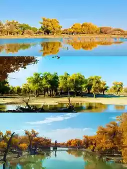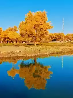 👣 Erdao Bridge: Here hides a reflection forest, with lakes like mirrors reflecting the golden Populus euphratica and the deep blue sky. Photography enthusiasts can capture stunning moments no matter how they compose their shots.