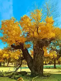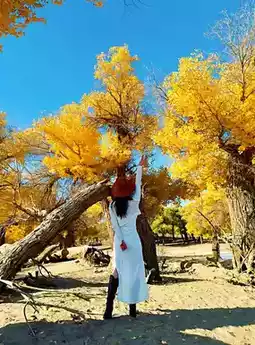 In this Populus euphratica forest, every leaf seems to tell the story of time passing, and every trunk bears witness to the hardships of the years. When sunlight falls on the golden leaves, it seems to drape the entire forest in a layer of golden radiance. This poetic and picturesque scenery only lasts for 21 days each year; if you miss this month, you'll have to wait until next year!