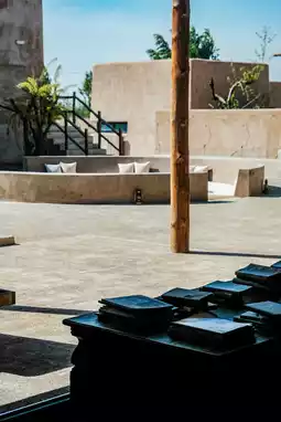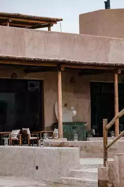 Just a 10-minute drive from the airport, as the vast landscapes of Ordos' Yijinhuoluo Banner flashed by the car windows, an amber-hued architectural complex emerged like a desert mirage. The silhouette of Natrail Ji Wai·Peng Homestay channels the exotic charm of AlUla while incorporating Moroccan geometric aesthetics into its rammed earth walls. Sand-colored canvas drapes over rooftops, with terracotta walls echoing ochre rock formations. Copper kettles and firewood piles in courtyard corners evoke the chivalrous spirit of martial arts novels.