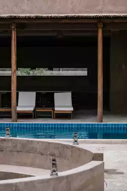 By daylight, the courtyard transports guests to another world, where the pool mirrors Ordos' artistic heritage like a cut sapphire. Moonlight transforms the space into an enchanted realm - brass lanterns swaying with Marrakech market warmth, bonfire flames dancing to nomadic rhythms across millennia.