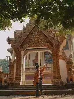 The best time to visit this temple is in the morning or evening because the sun is not too strong and the weather is not too hot. There are no large trees around the temple. The temple is located in an empty area within the temple grounds.