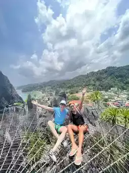 Safely guided by harnesses and steel walkways, the climb is a mix of thrill, wonder, and nature’s raw beauty. You’ll pass through hanging bridges, jungle paths, and narrow rock formations before reaching the view deck suspended above the world—the perfect place to pause, reflect, and capture unforgettable moments. 📸