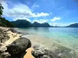 Hidden Beach lives up to its name tucked behind towering limestone cliffs on Matinloc Island, it can’t be seen from the open sea. To reach it, you need to swim through a narrow opening between rocks, which makes the experience feel like a little adventure. Once inside, you’ll find a peaceful cove with soft white sand, crystal-clear water, and calm waves perfect for floating and relaxing. It’s also a great spot for snorkeling with colorful fish and coral around. Part of El Nido’s Tour C, this quiet escape is perfect for nature lovers looking for something unique and serene.