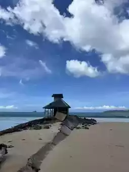 There are a couple of cafés, one with a mini beach club vibe 🥥