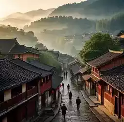 The charm of Luomu Ancient Town lies not only in its architecture but also in its vibrant atmosphere. The residents of the ancient town still lead a leisurely life. On the streets, elderly people sit on bamboo chairs, basking in the sun and chatting; children play in the alleys, full of life and energy. In the shops, artisans meticulously craft traditional handicrafts, such as bamboo weaving and wood carving, their exquisite skills captivating onlookers. The market is filled with fresh fruits and vegetables, with vendors enthusiastically greeting customers, the sounds of bargaining filling the air. Here, you can truly experience the essence of life, away from the hustle and bustle of the city, and enjoy the peace and tranquility.