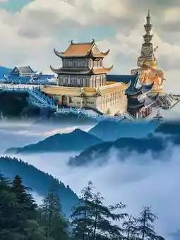 "Mount Emei, a Buddhist paradise above the clouds, a fairyland on earth."