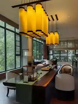 ⛰️Located at the foot of Emei Mountain, it's an elegant and secluded Zen retreat. The lobby is decorated with a strong Chinese aesthetic, and the lobby bar offers tea with scenic views.