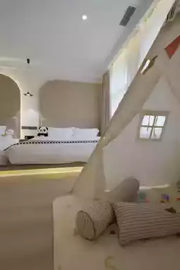 The hotel is filled with panda-themed decor and has a kids' play area, making it very family-friendly. The little ones loved it❤️.